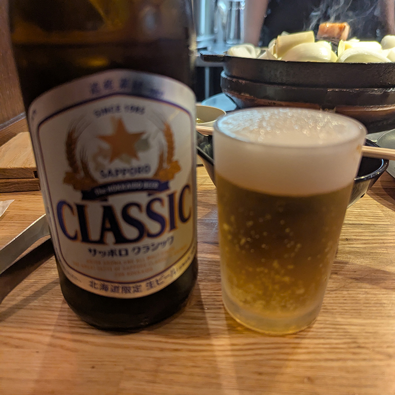 酷暑なのでビールを頂く。前回は生ビールを頂いたので今回は瓶で用意されているサッポロクラッシックを。この辺り、流石に本店が札幌にあるお店だけのことはある。