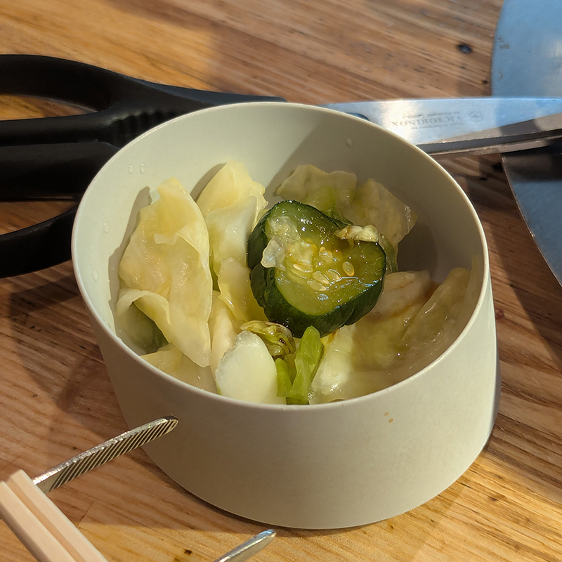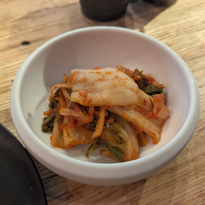 合いの手にお通しの漬物とキムチを。キムチは前回の方が美味しく感じられたのは状態のせいだろうか。