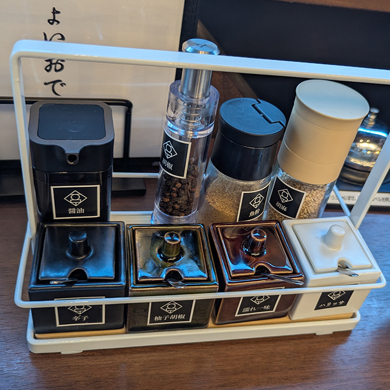 これだけではなく、各種調味料が用意されているのでお好みで味変を楽しむことができる。
