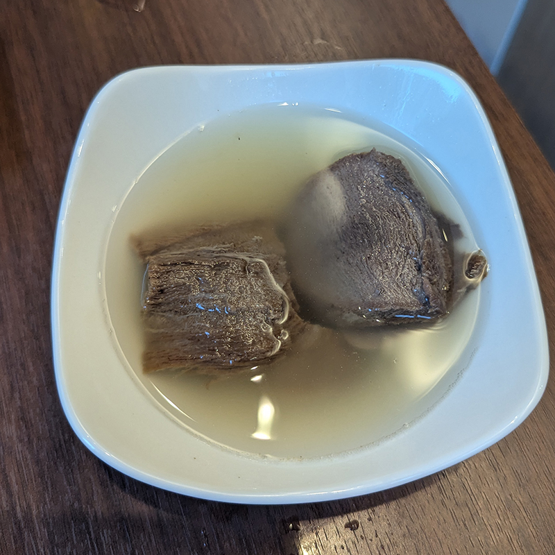 出汁の味は割と濃い目で昆布出汁がかなり強い。牛タンには味がよく染み込んでいて、肉も柔らかい。