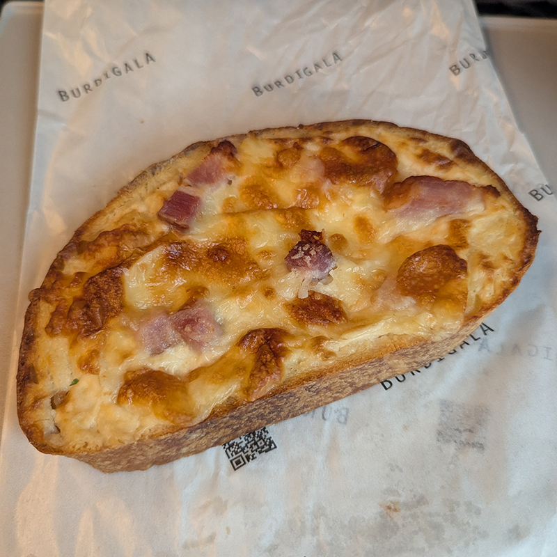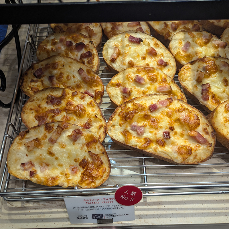 最初はサンドイッチにしようかとも思ったのだが、結構なボリューム感だったので焼きたてだったこともあり、タルティーヌアルザスを。