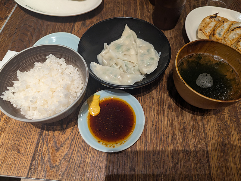水餃子は皮がしっとりとして個人的にはこちらの方が好み。だからと言って水餃子だけよりは両方楽しんだ方がより楽しめる。