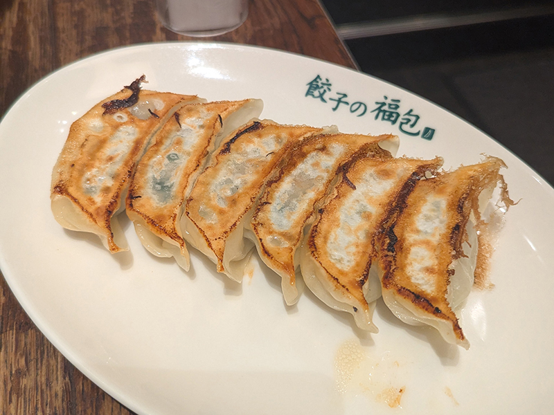 餃子は6個と亀戸ぎょうざの5個に比べて1個多い。表面は焼色がパリッと中の具材は野菜中心。