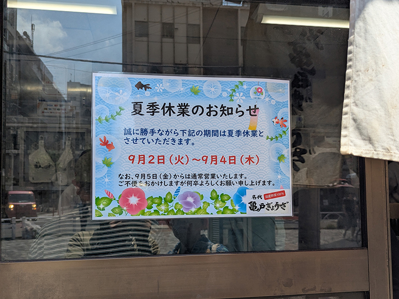 明日、9/2~9/4は夏季休暇の様なのでご注意を。