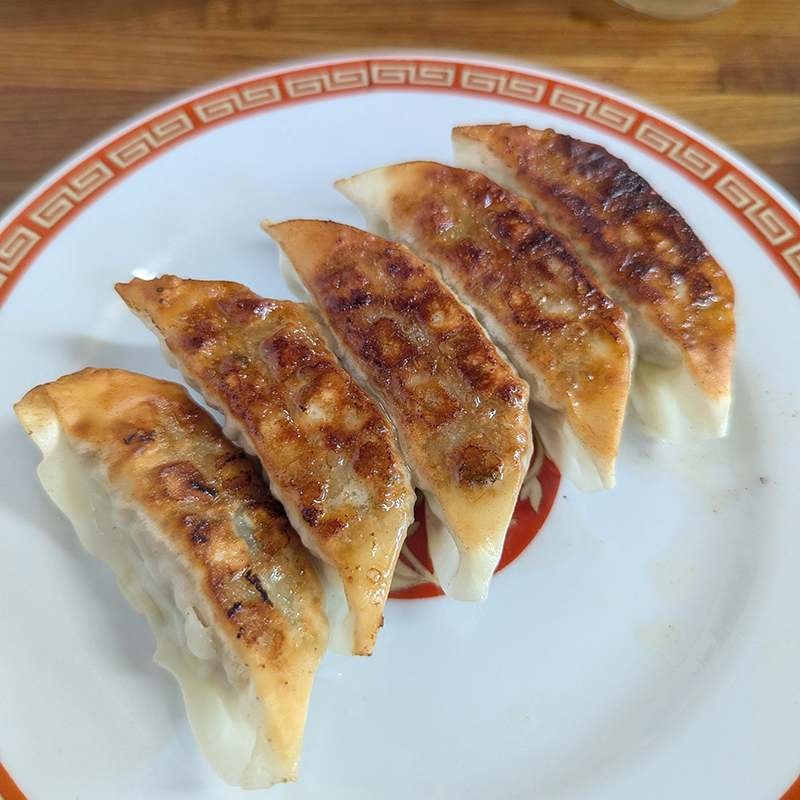 さほど食欲もない季節。でもビールは飲みたい時にはスナック感覚で頂けるこちらの餃子は打ってつけ。
