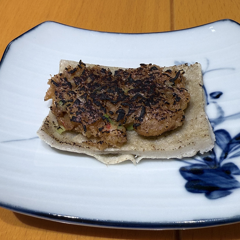 味噌の下には厚めのそばの生地が敷かれ、もっちりとした歯ごたえで味噌単体よりも旨味が増す。
