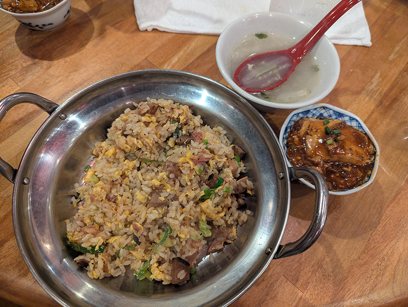 別の日に冷やし担々麺を頂いていたのでジャージャー麺のつもりだったのだが、ランチメニューには久しぶりに炒飯があるではないか。
