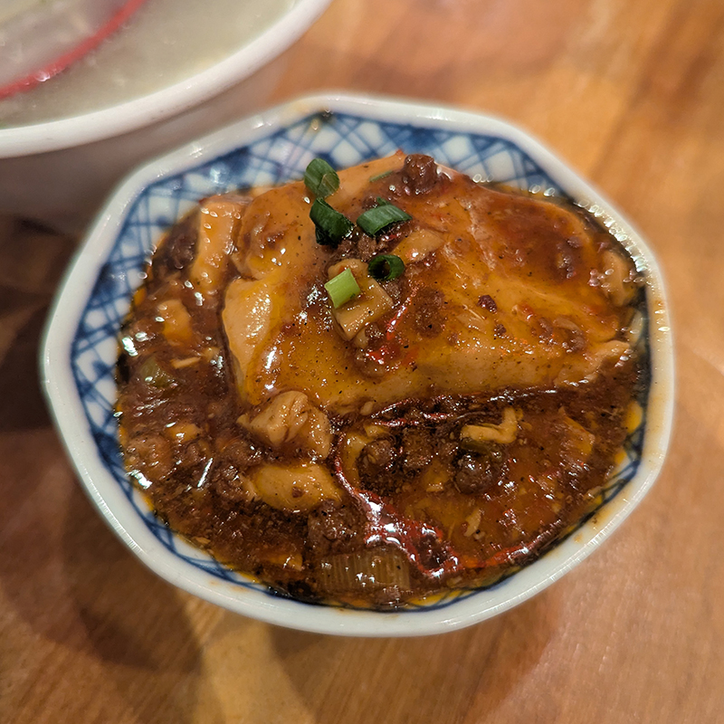 これにはミニ麻婆豆富が付いてくるところが嬉しい。炒飯だけだとどうしても単調になってしまうが、炒飯に掛けたりしながら味変をしながら、最後まで飽きることなく頂ける。