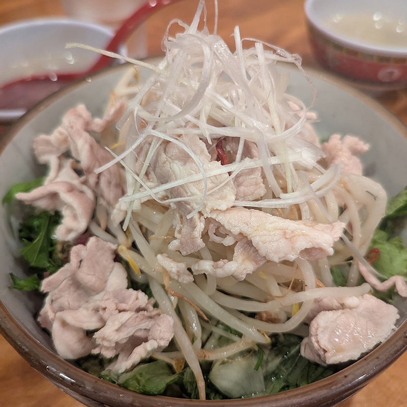 この日のメニューを見て気になった料理がひとつあった。それは豚ともやし冷麺。