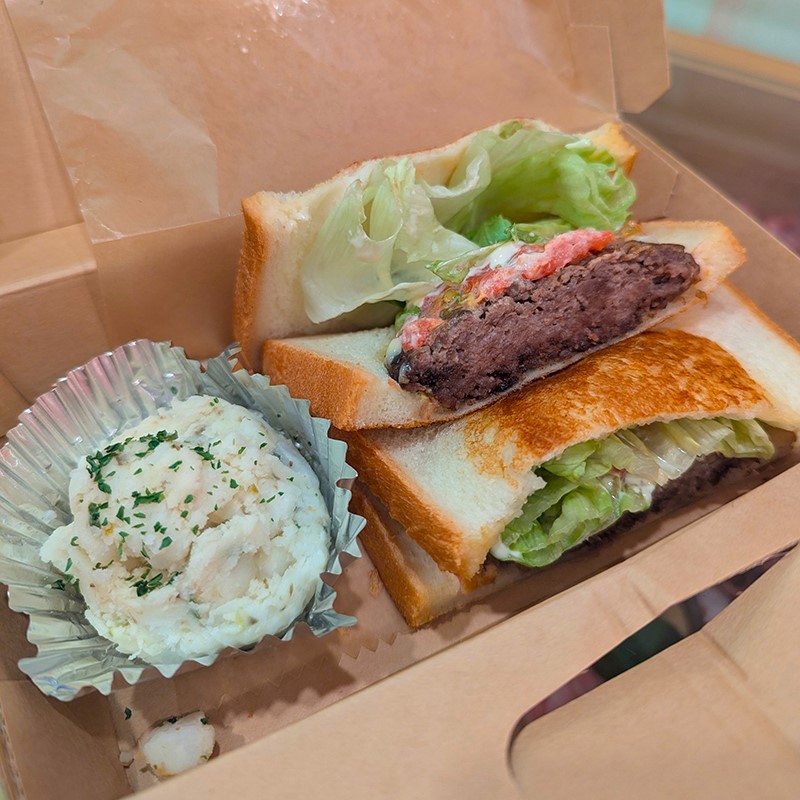 粗挽きの牛肉を使ったハンバーグはゴロッとした食感があって肉の旨味がしっかりと感じられる。流石にテイクアウトなのでジューシー感こそわからないが素直に美味しい。ボリューム的にも十分満足がいく。