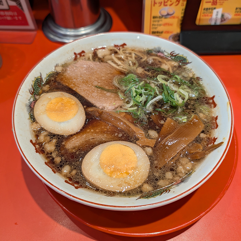 東京背脂黒醤油ラーメンを謳っているお店で、外観からはいかにもチェーン店と思われるが、初めて目にするお店だったので入ってみることに。