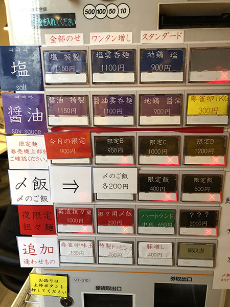 結局、5分ほど貼り紙を見ているうちに店内に案内された。券売機で食券を購入。