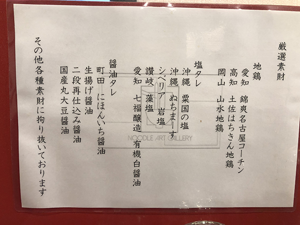 具材を見ると鶏シャーシューが。ラーメンの鶏チャーシューは素材が良くない事が多いのか、変にブロイラー臭い事が多い。そうでなくても味付けが淡泊過ぎて美味しいと感じた事がない。しかし、臭味はまったく感じられず、鶏そのものに旨味があり、それを引きたたせてくれる塩味が感じられた。