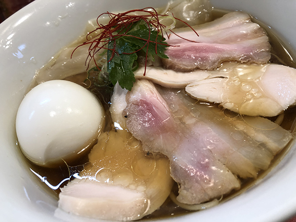 まずはスープをひと口。澄んだスープは全体的に丸味を帯びた優しい味わい。