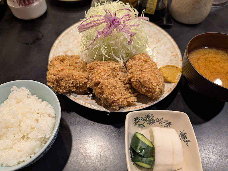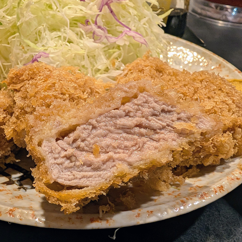 粗めのパン粉が油切れよく仕上がっている。肉厚ではあるが火の通しはちょうどいい塩梅。