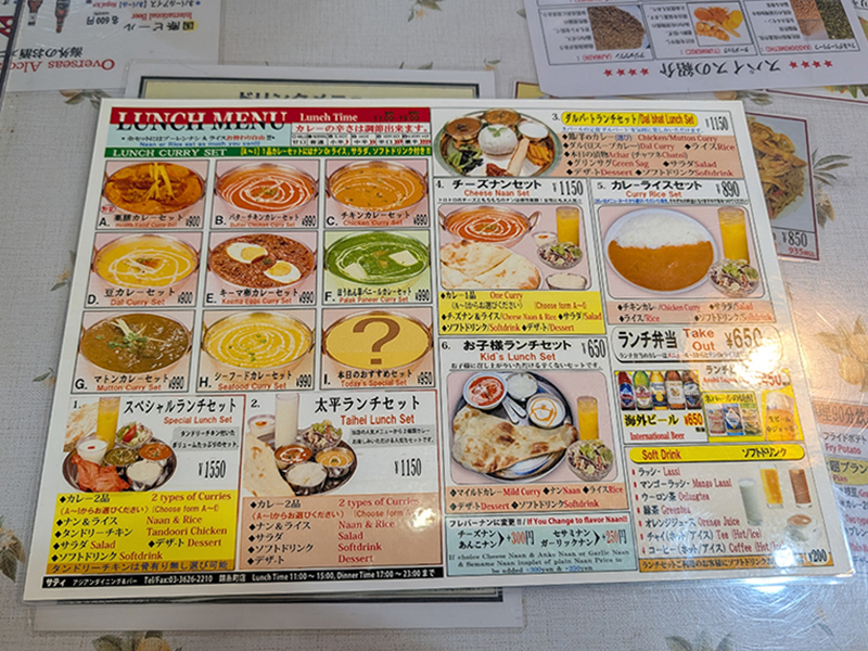 メニューはインド・パキスタンのカレーが中心だが、メニューを見るとカオマンガイなどタイ、インドネシアと言った国々の料理もあるので看板に偽りなし。カレー単品なら1、000円未満とリーズナブル。