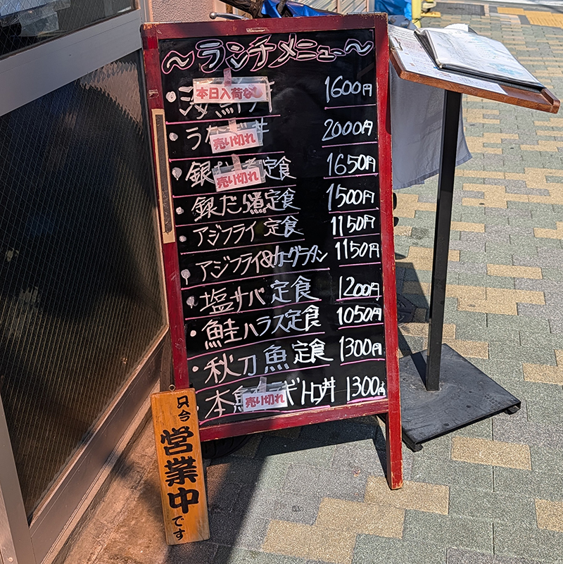 夜は居酒屋だが、ランチは魚系の定食が楽しめる。どうも見慣れたメニューだと思ったら店主は錦糸町の高はしから独立して開いたお店だと知って納得した。品揃えもほぼ高はしと変わらない様にお見受けする。