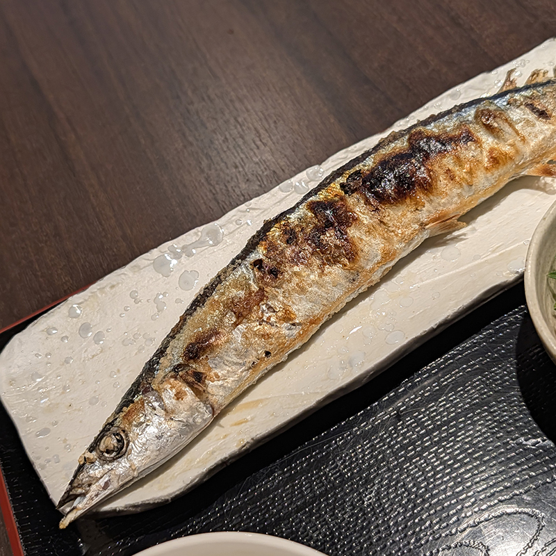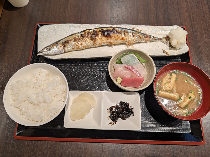 次の日が定休日ということもあるのだろうが、一巡目にして既に売り切れが続出。通常であれば迷わず銀だら煮定食にするところだが、いまの時期しか食べられないことを考え秋刀魚定食に。