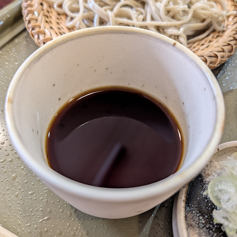 せいろは想像していたよりも太めでボリュームも少なめ。そばは喉越しよく、しっかりとコシがある。せいろというからには一茶庵系だと思われるが、つゆはかなり濃厚で最近頂いた藪系のそれよりも濃くらいだ。