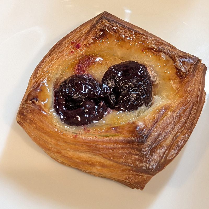 もうひとつはガッティのチェリー。こちらは小ぶりのポーションでパイ生地はサクサクと軽やか。想像していたよりもチェリーの酸味が薄かったが、全体的にはまずまずのバランス。