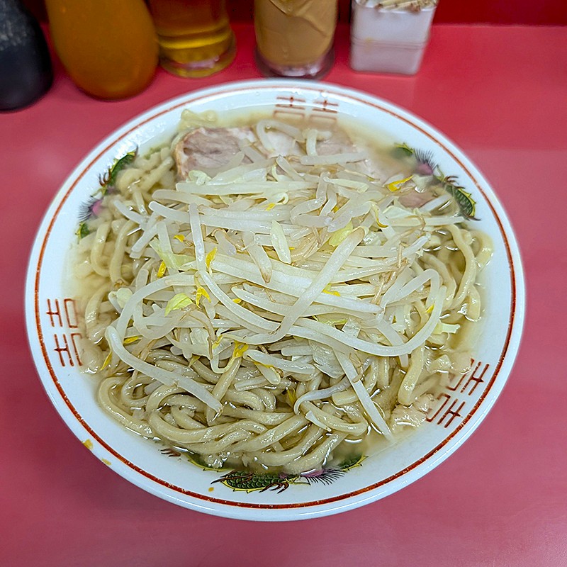 ラーメン、細(こちらでいうところの普通)に野菜少なめで。最近、ごく厚のチャーシューが多く入ることがあってこれがボディブローの様に効いてくる。そのため、敢えて野菜は控えめにした。