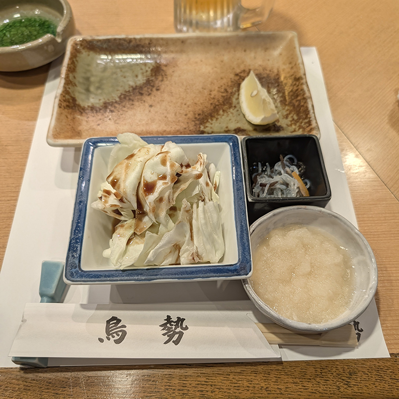 お通しとしてキャベツと大根おろし、小鉢が供された。各々、いい箸休めになる。