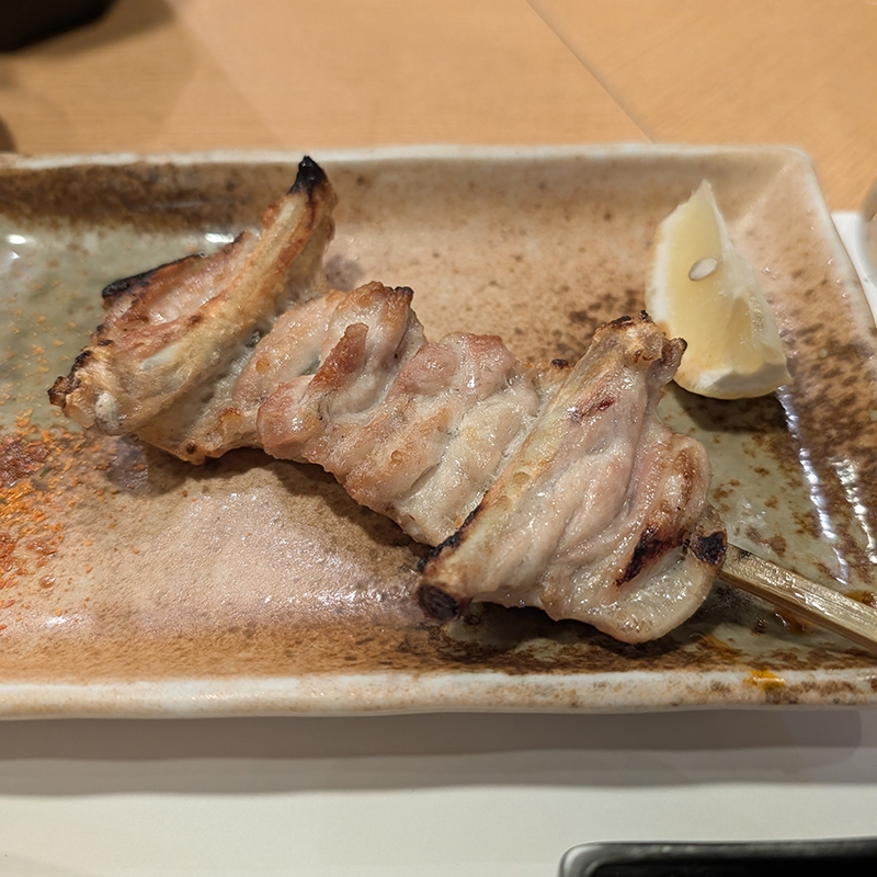 手羽先としてはやや小ぶり。何となく串の締めに出てくるイメージなのだが、ここで手羽先が出てくるところが面白い。表面がパリッといい塩梅の火の通し。