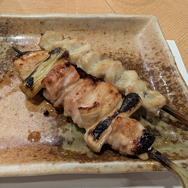 ぼんちりはほどよく余分な脂が抜けてカラッとした焼き上がり。勿論、脂の甘味も感じられる。ねぎまは胸肉だろうか、いささか淡白な印象。