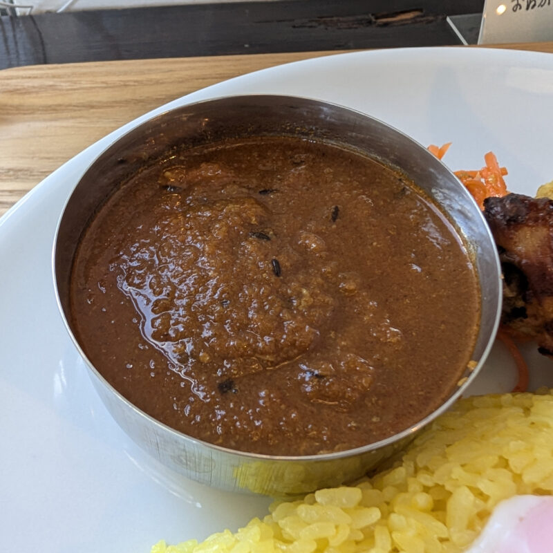 一方、チキンカレーはスパイスが複雑に溶け込んでいい塩梅にこなれた味に仕上がっている。辛さも適度にあってこちらは文句無しに旨い。