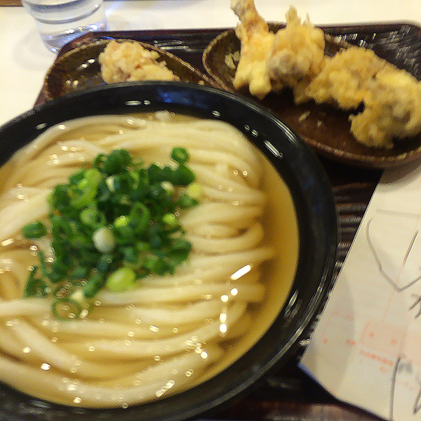 釜揚げうどんにも心を惹かれたが、寒いので、かけうどんとかしわ天を注文。