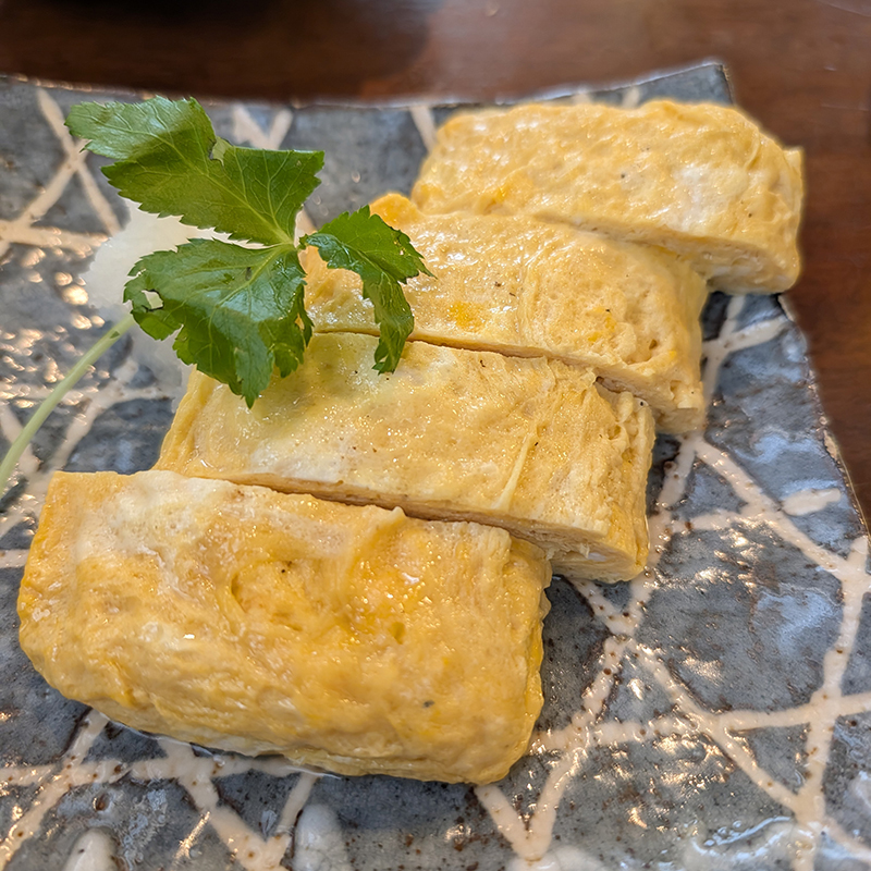 玉子焼きはふわふわの食感で主張こそ強くないがほんのりと出汁が香る。
