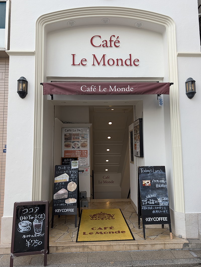 ナポリタンなどの喫茶店の定番メニューもあるのだが、入口の立て看板に書かれていたドライキーマカレーセを注文。セットにはサラダとスープに食後のコーヒーが付く。