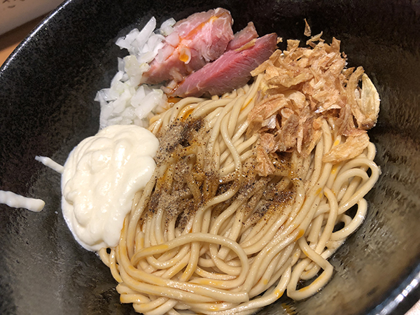 初めてだったので特製中華蕎麦と和え玉+和え玉カスタマイズを。
