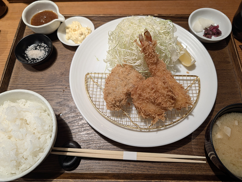 単品にしようかとも思ったのだが、ミックスにも心惹かれる。結局、海老フライととんかつの両方が頂ける上ヒレと海鮮ミックスをお願いすることに決めた。