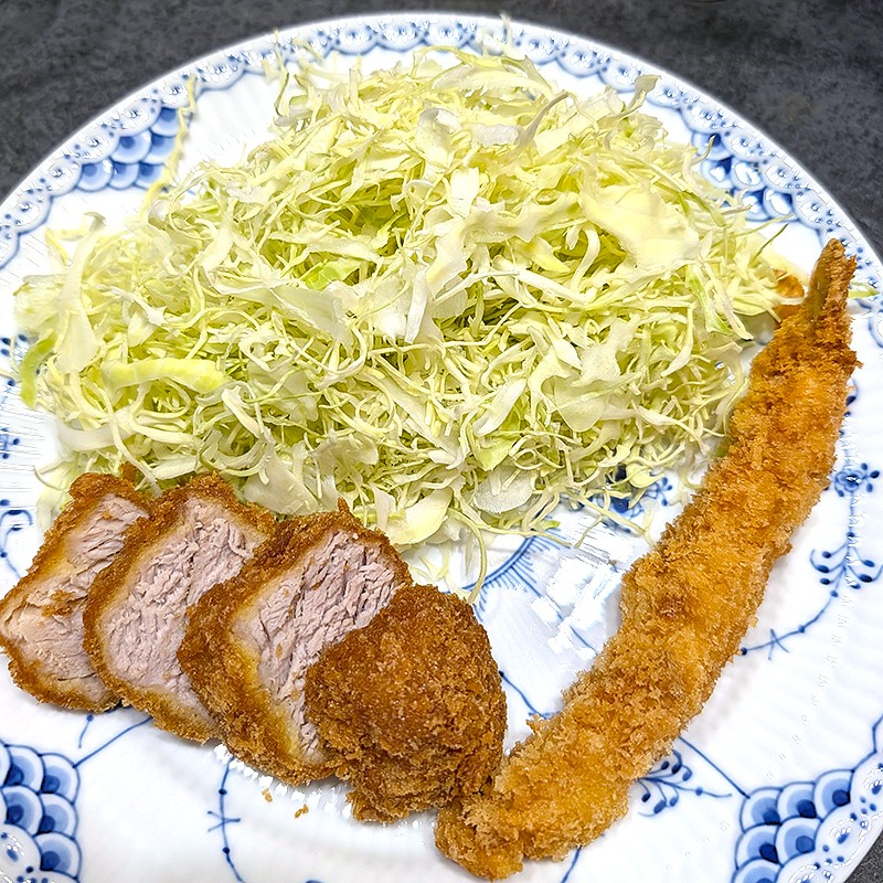 キャベツの千切りも売られているのでとんかつを温めるだけで頂けるのは重宝する。キャベツもコンビニで売られているものに比べて数段いい。