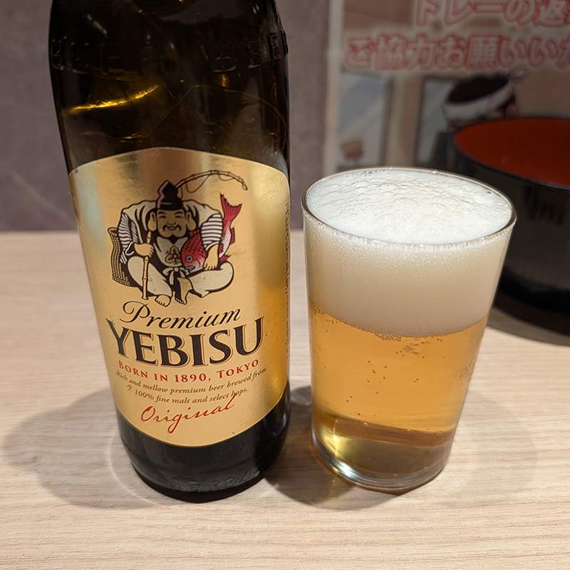 まずはうどんが来るまでの間、ビールで喉を潤す。ビールはエビス。半分くらいやったところで着丼。