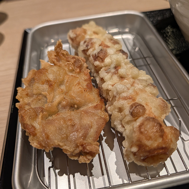 ちくわ天、鳥天どちらも油切れがよく、サクサクとした食感でビールのアテにも最適。