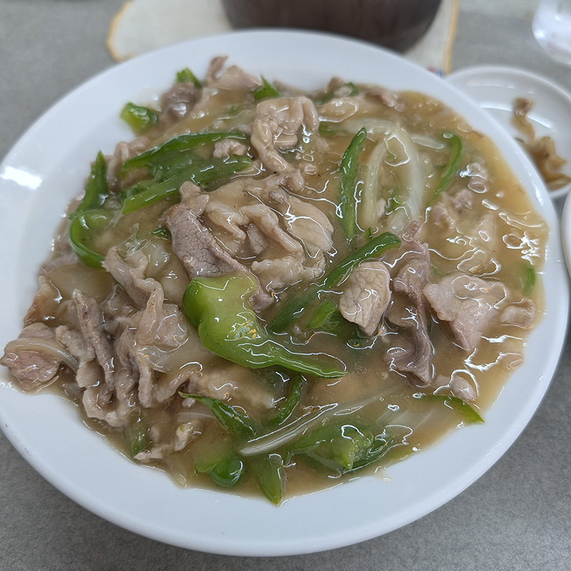 前回訪問時の印象は青椒肉絲丼。あながち間違いではないが竹の子も入っていないし、豚肉も細切りではないのでよりシンプルになった形と言える。たっぷりの餡が掛かりかなりのボリューム。