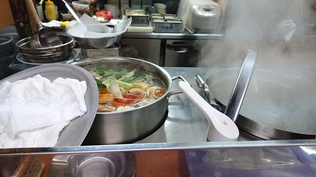 ラーメンを作る時に使用するスープを中華鍋に注ぎ、そこにしじみを投入して調理している様だ。(スープを注いだ中華鍋を手に奥に引っ込んでしまうので詳細な様子はわからない)