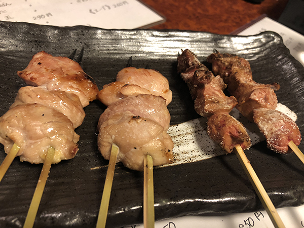 ついつい夢中になっていくつか写真を失念してしまったが、他ではキンカン、白レバー、鴨(これには絶対に醤油)などがオススメ。