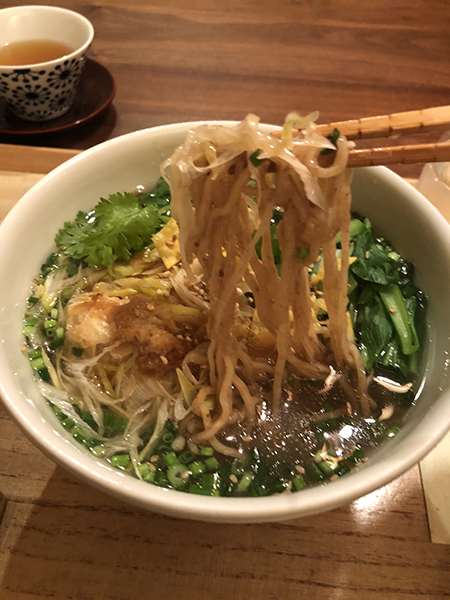 蒸し鶏の葱油がけ温麺