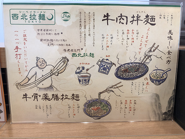 汁なし麺の牛肉拌麺と汁物の牛骨薬膳拉麺が二本柱。