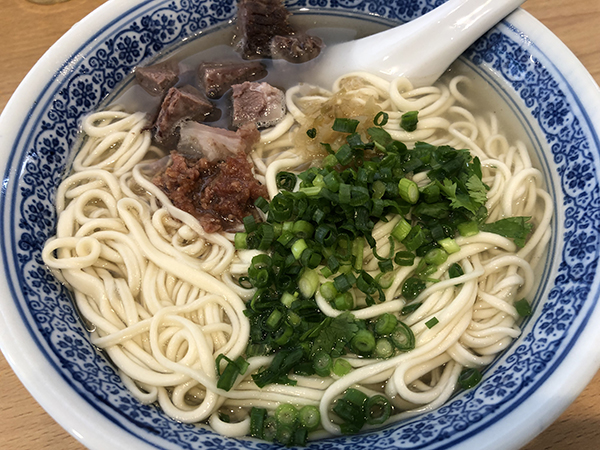 水天宮と箱崎JCTの丁度、中間点ほどに位置している。特に派手さはない外観だが、白壁がひときわ目を引く。蘭州拉麺の流れを汲み、福建省厦門(アモイ)で独自に発展を遂げた麺料理を食べさせてくれる。