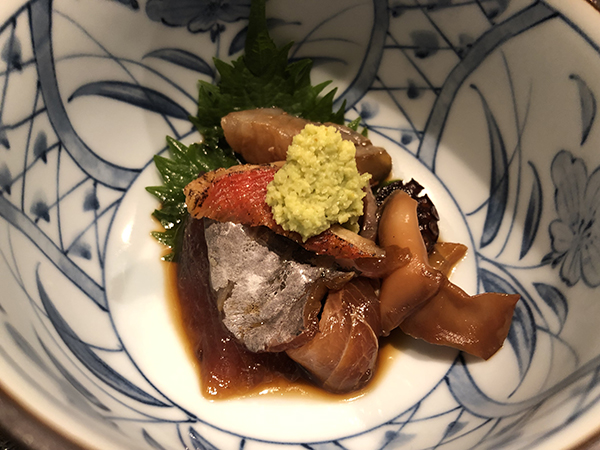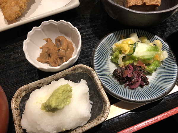 追加注文した料理の他に、わさびが乗った大根おろしにお新香、豆腐の煮物が付くのでかなり豪勢だ。