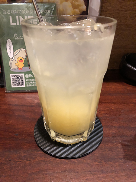 この辺りから飲み物を季節の生絞りサワーに。この日のフルーツは小夏(日向夏)。