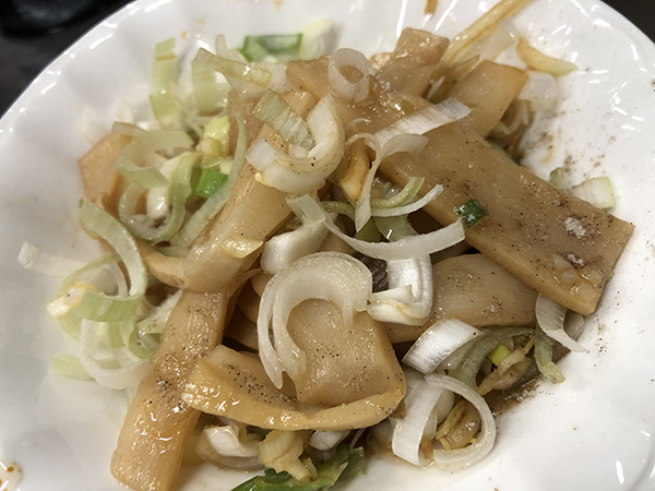 休日は昼酒率が高いお店である。チャーシューは底にメンマが隠れているので通常はチャーシュー