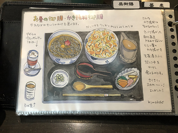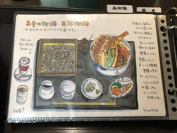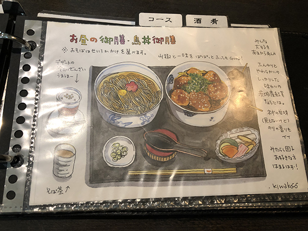こちらのお店のメニューはイラスト付きとちょっと変わっている。このイラストがリアルに情報を伝えながら、ほっこりと心和ませてくれる。しばらく眺めていても不思議と飽きがこない。
