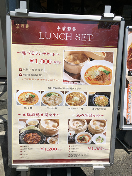 ベーシックな定番のランチメニューは小籠包を2種類から選択し、主食となる麺類かチャーハンを選択するというもの。更にデザート類を追加で注文することも可能だ。以前は炒めものなどの定食もランチメニューに組み込まれていたのだが、どうやら現在はやめてしまった様だ。
