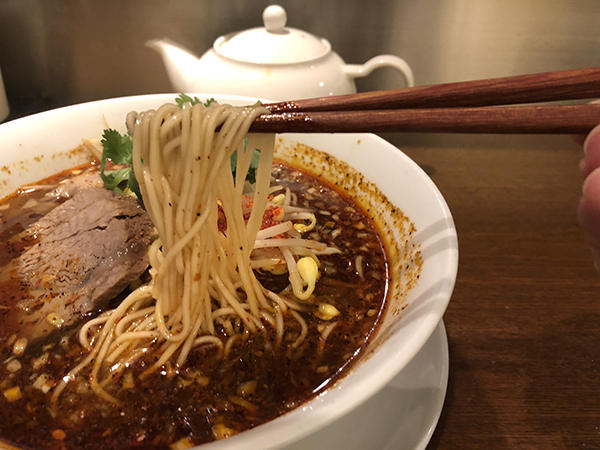 麺は細身のタイプ。恐らく担々麺で使われているものと同じものだろう。
