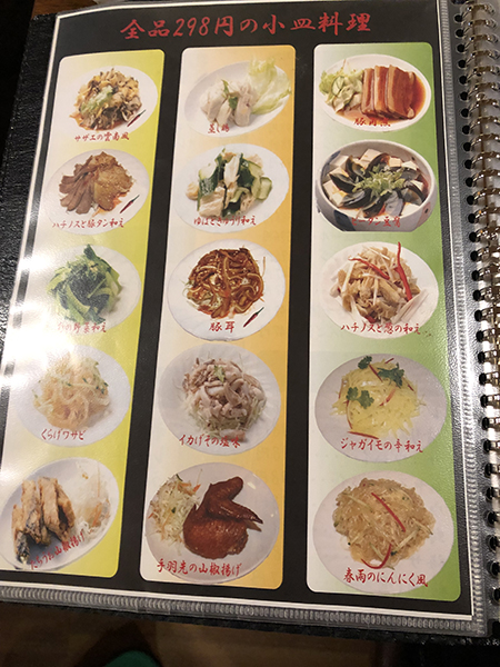 中には、298円均一というお手頃な小皿メニューも多数用意されている。